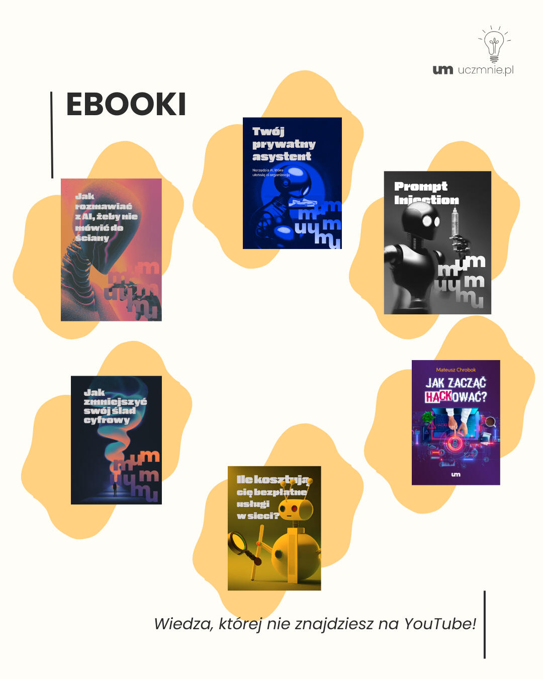 Cześć! Nazywam się Mateusz Chrobok i zapraszam Cię na moją autorską platformę edukacyjną. Dzielę się tu wiedzą o cyberbezpieczeństwie i sztucznej inteligencji oraz uczę, jak świadomie korzystać z sieci czy sztucznej inteligencji.Uczmnie to miejsce, które powstało z potrzeby – widziałem, jak niewiele osób faktycznie rozumie zagrożenia w sieci, mimo że jesteśmy coraz bardziej otoczeni technologią. Otrzymywałem też wiele wiadomości z prośbą o pomoc, gdy bezpieczeństwo czy prywatność w internecie zostały naruszone.Cyberprzestępcy stają się coraz sprytniejsi, a ich metody coraz bardziej wyrafinowane. Dlatego właśnie na Uczmnie publikuję materiały, które pomogą Ci zbudować skuteczną ochronę przed zagrożeniami - niezależnie od tego, kim jesteś i czym się zajmujesz.Zawodowo jestem związany również z AI, a prywatnie uwielbiam zaglądać "pod maskę wszystkich systemów". Dlatego Uczmnie to także świetne źródło wiedzy o sztucznej inteligencji, którą możesz tu poznać od zupełnych podstaw.